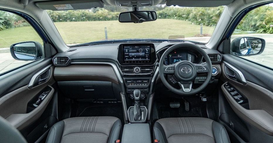Design-wise, there is nothing new to look out for. The Urban Cruiser Hyryder still sports a familiar styling with seven monotone colour options, four of which can be paired with a black roof for a dual-tone. It still has the familiar profile with the same LED lighting elements and 17-inch alloy wheels. Inside, it gets the same dual-tone black/brown cabin theme.