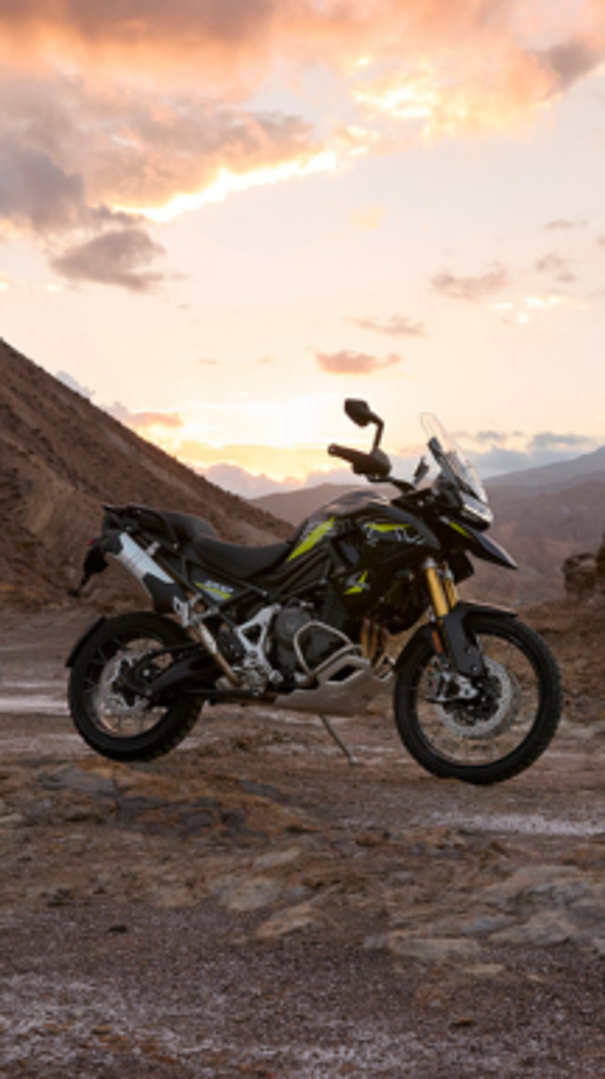 The Tiger 1200 Desert Edition, based on the Rally Pro, receives a similar treatment and wears a unique desert-themed paint scheme